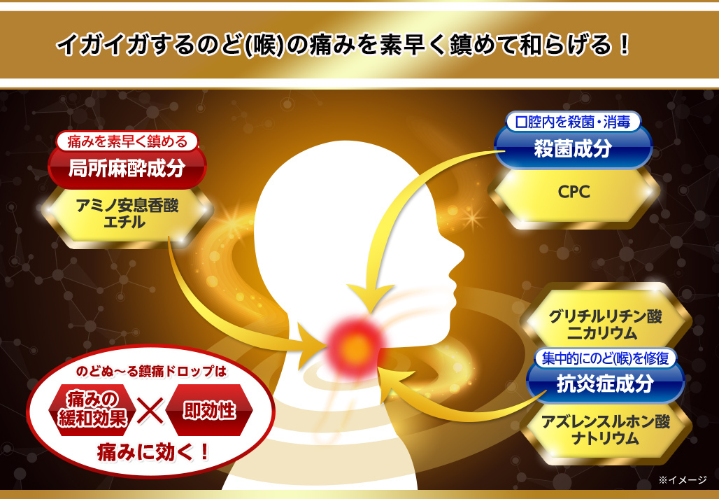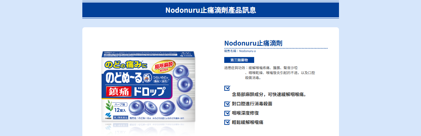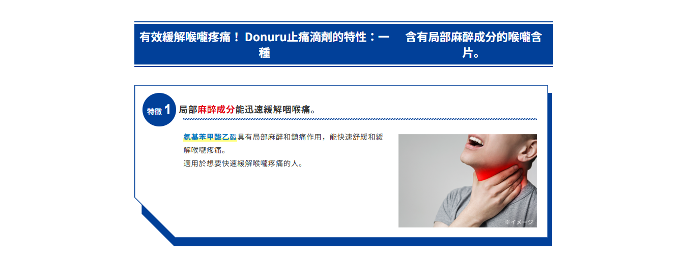 能直接作用於喉嚨疼痛原因、並快速見效的止痛喉糖。