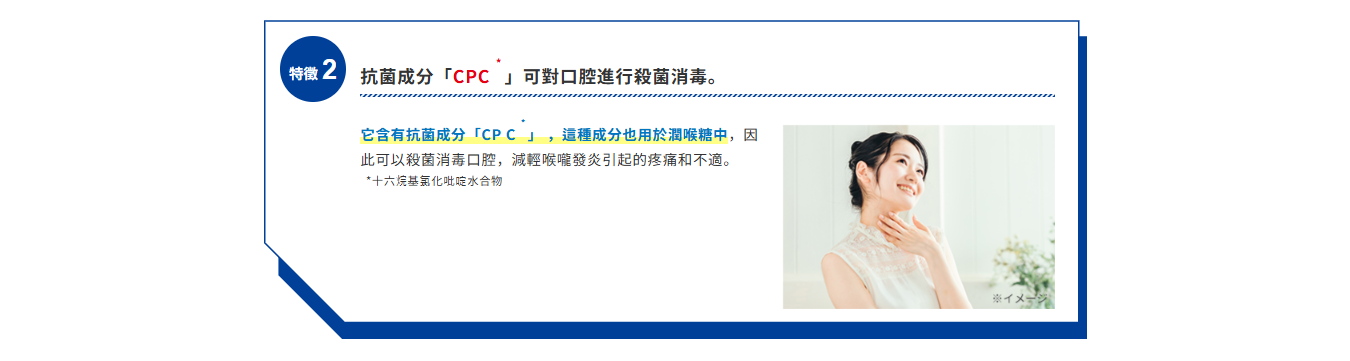 含有殺菌成分(CPC),可對口腔內進行殺菌、消毒。
