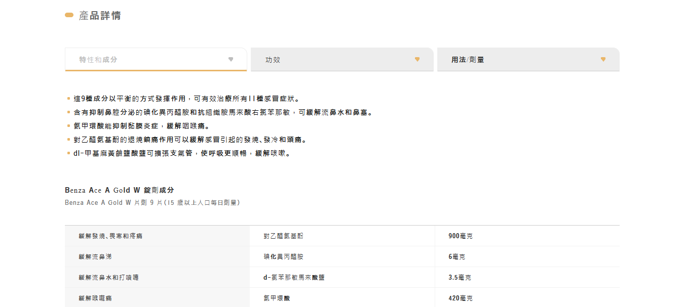 緩解感冒症狀:鼻水、鼻塞、打噴嚏、喉嚨痛、咳嗽、痰、寒顫、發燒、頭痛、關節痛、肌肉痛等。