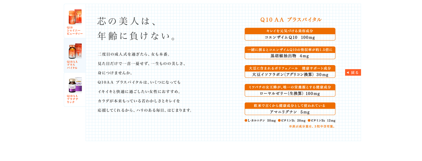 Q10AA Plus Vital含有輔酶Q10(輔酶Q10會隨著年齡增長而減少),