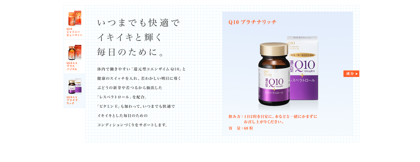 Q10系列讓您重煥青春活力。 “讓您每天都擁有舒適、活力四射、光彩照人的生活。”