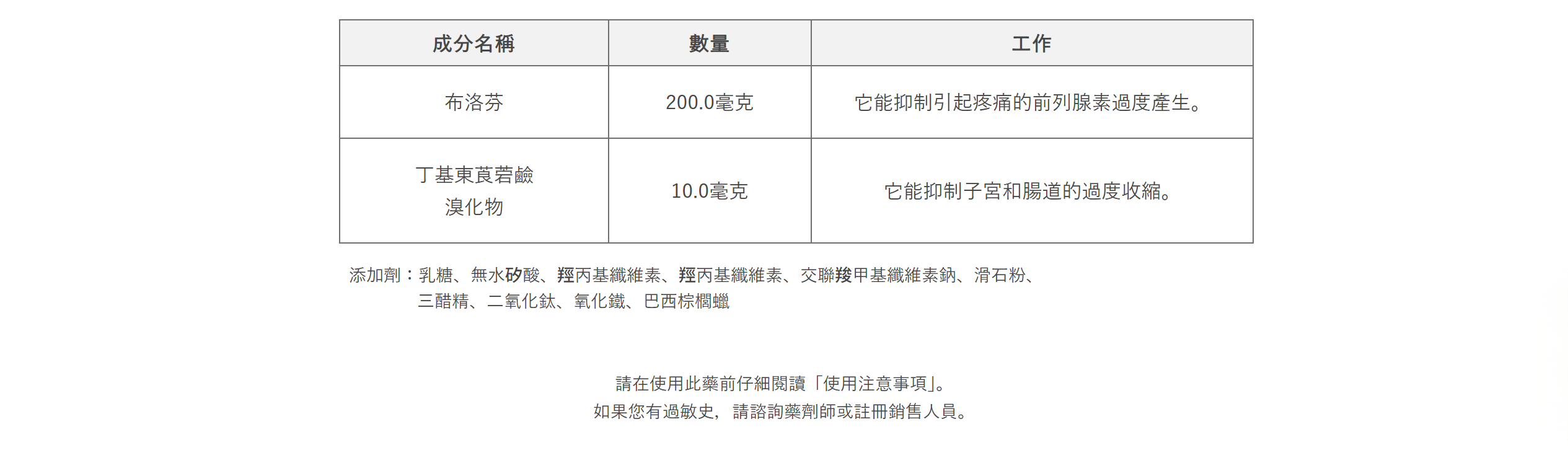 成分名稱-數量-作用