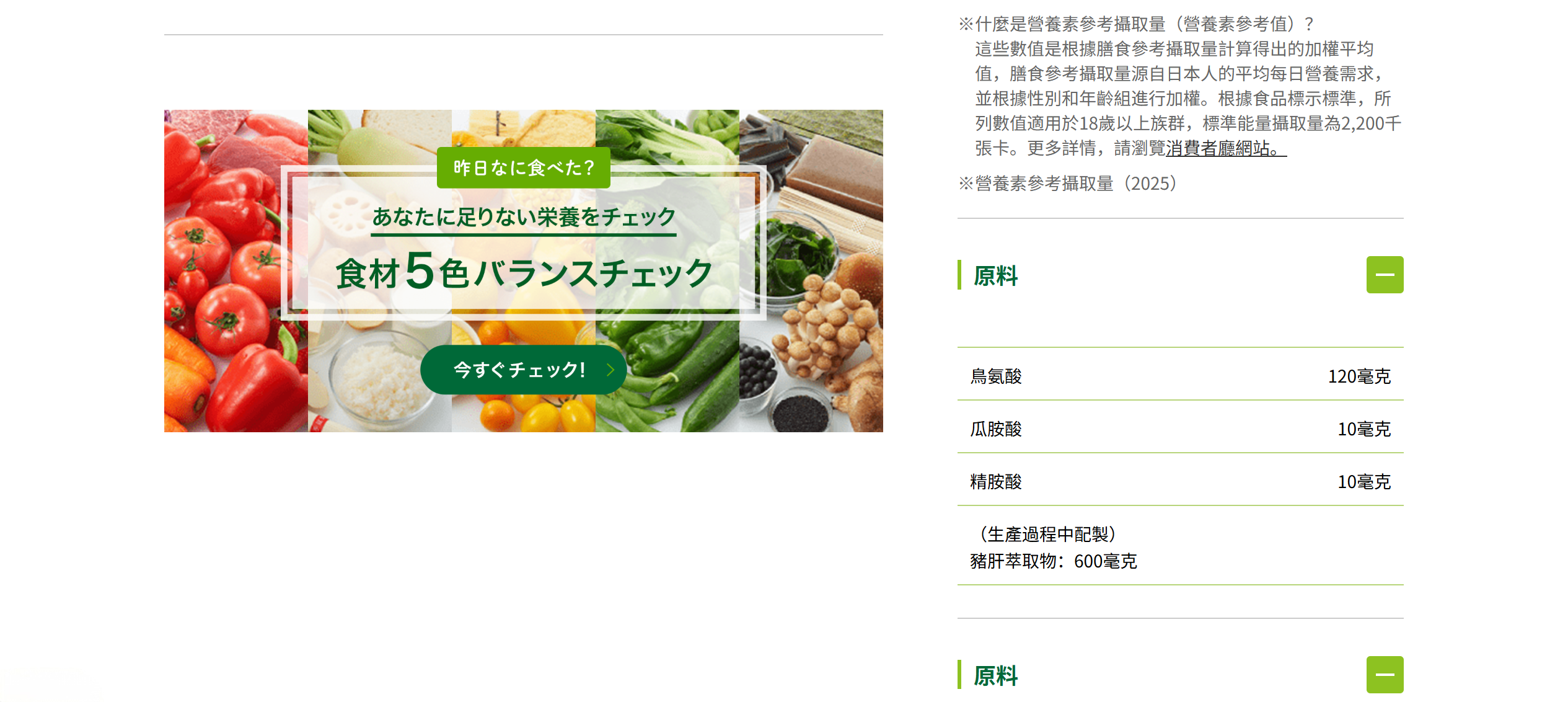 肝臟萃取物和鳥氨酸等兩種氨基酸。