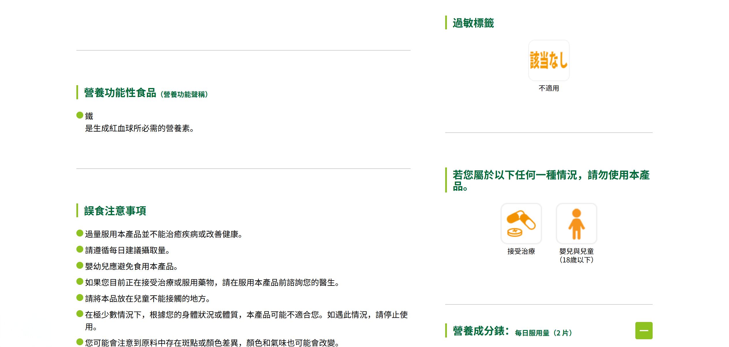 過量服用本產品並不能治癒疾病或改善健康。