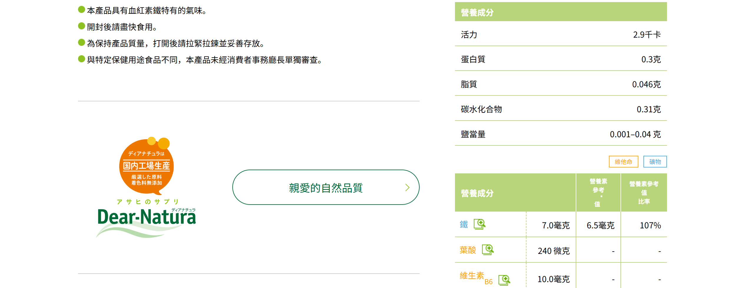 本產品具有血紅素鐵特有的氣味。