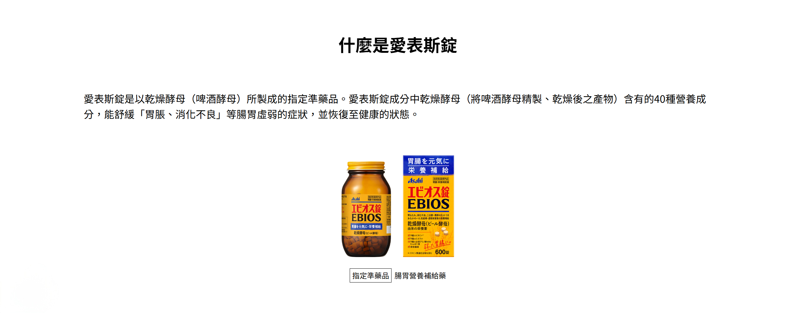愛表斯錠是以乾燥酵母(啤酒酵母)所製成的指定準藥品。