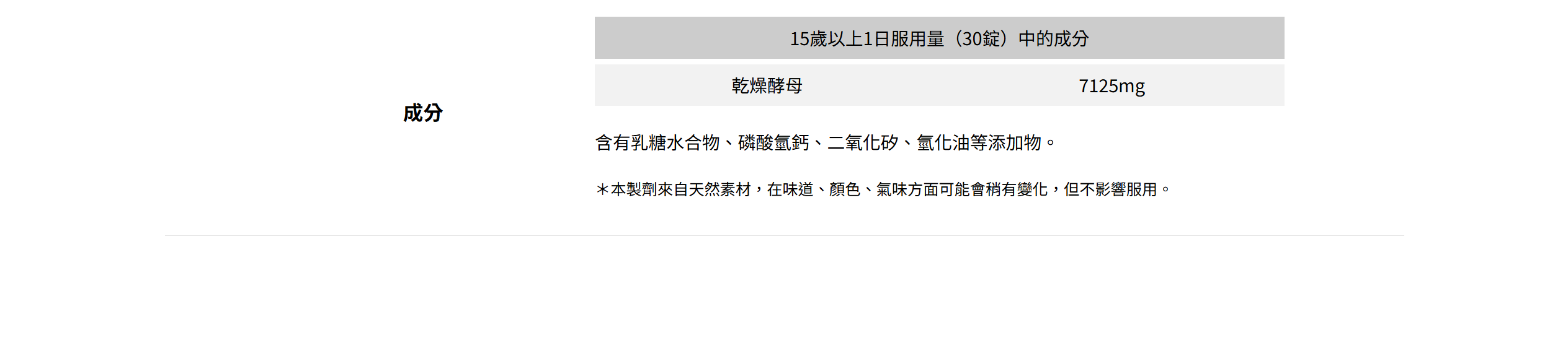 本製劑來自天然素材,在味道、顏色、氣味方面可能會稍有變化,但不影響服用。
