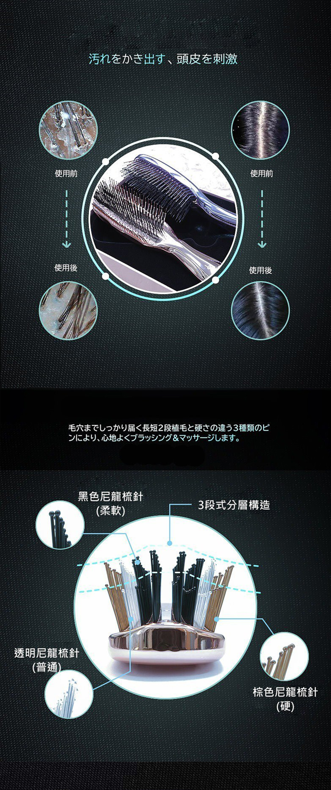 🔥3段式軟硬結合齒梳設計,科學刺激毛囊,減少頭髮出油現象,散發秀髮出眾的蓬鬆感。
