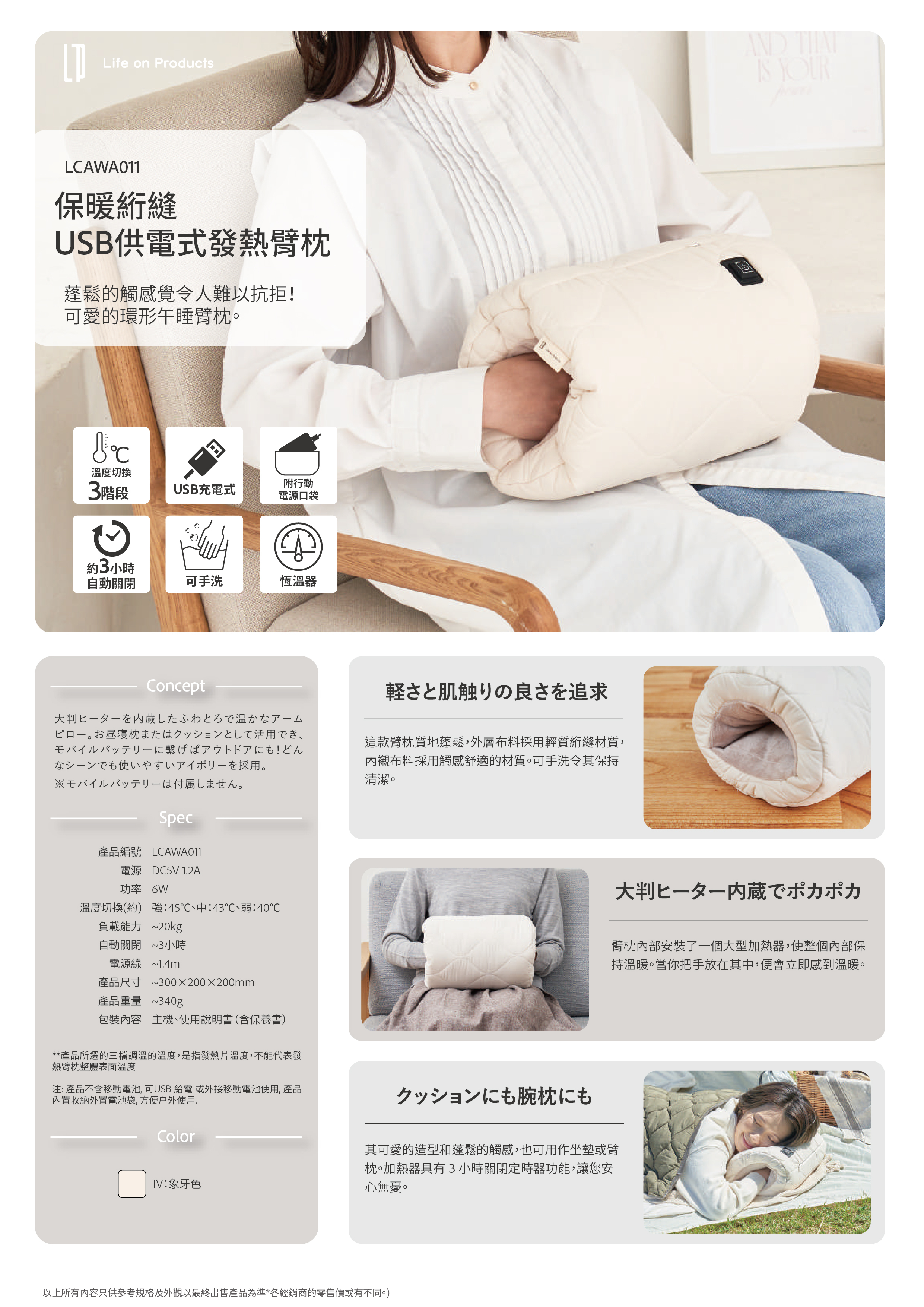 日本發熱臂枕 象牙色|Life on Product LCAWA011|搵好西
