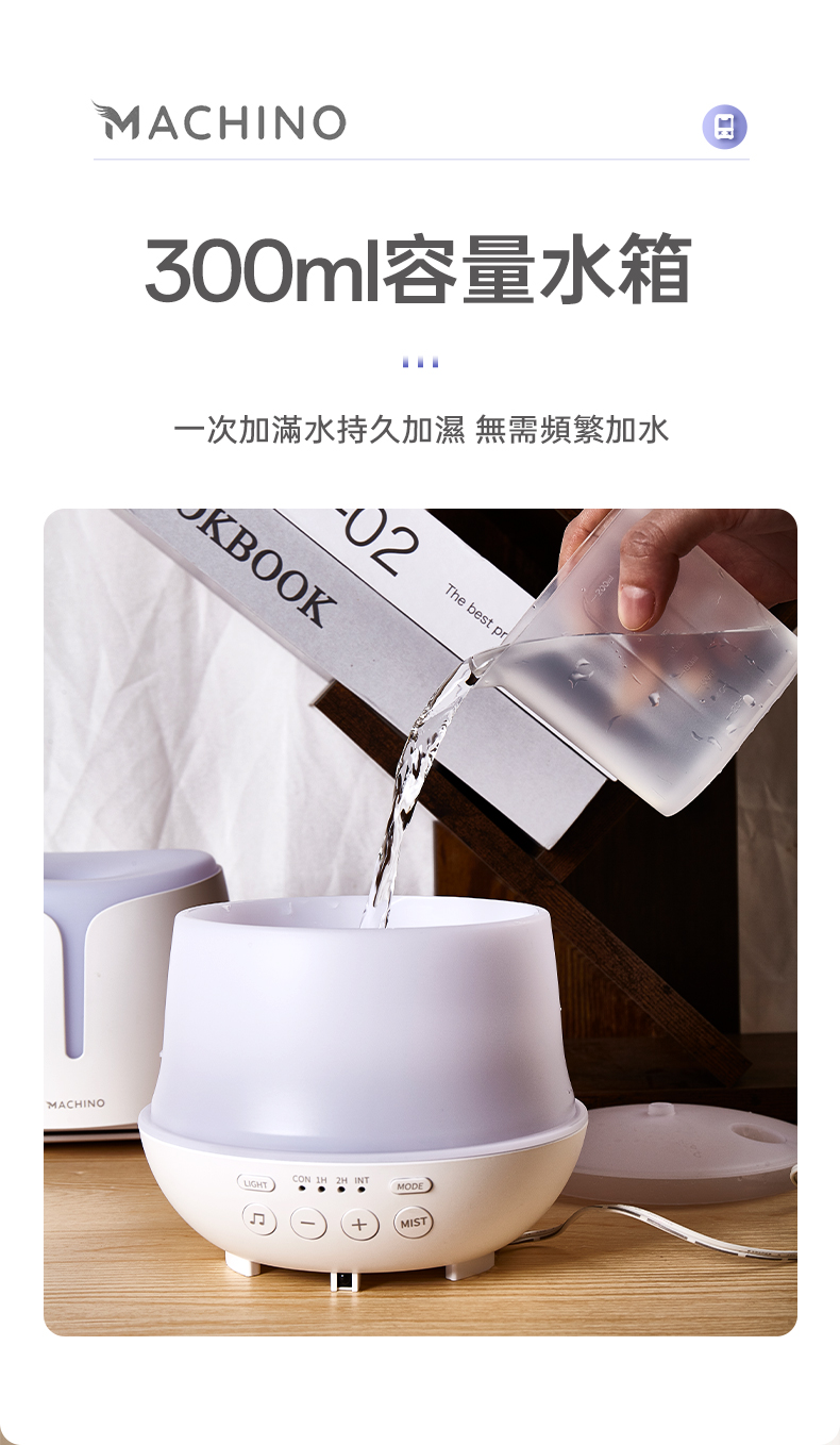 - 300ml容量水箱,一次加滿水持久加濕,無需頻繁加水