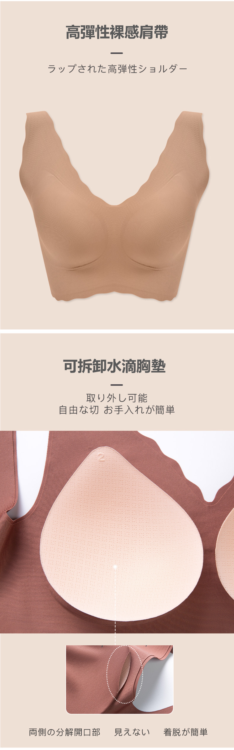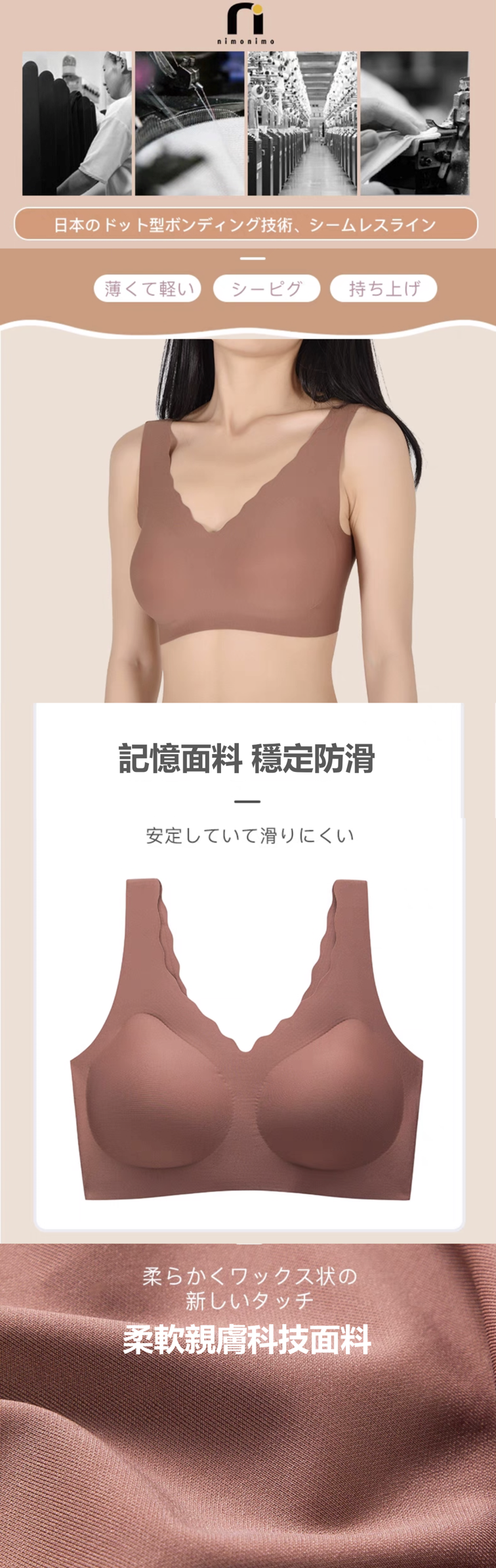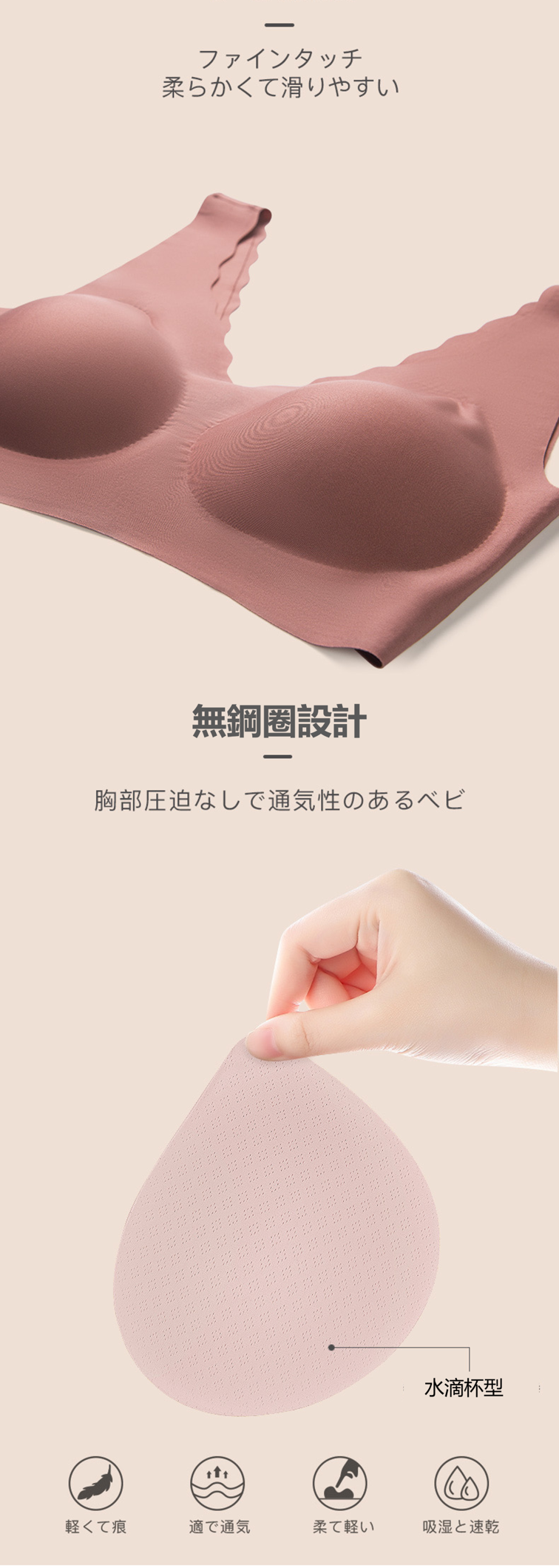 日式無針無線全覆蓋美胸設計,以高溫燙壓工藝代替車線,完美解決傳統內衣令肌膚留痕、磨擦不適的負擔,裸感體驗仿如人體second skin,貼身又自在。