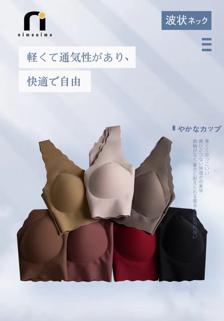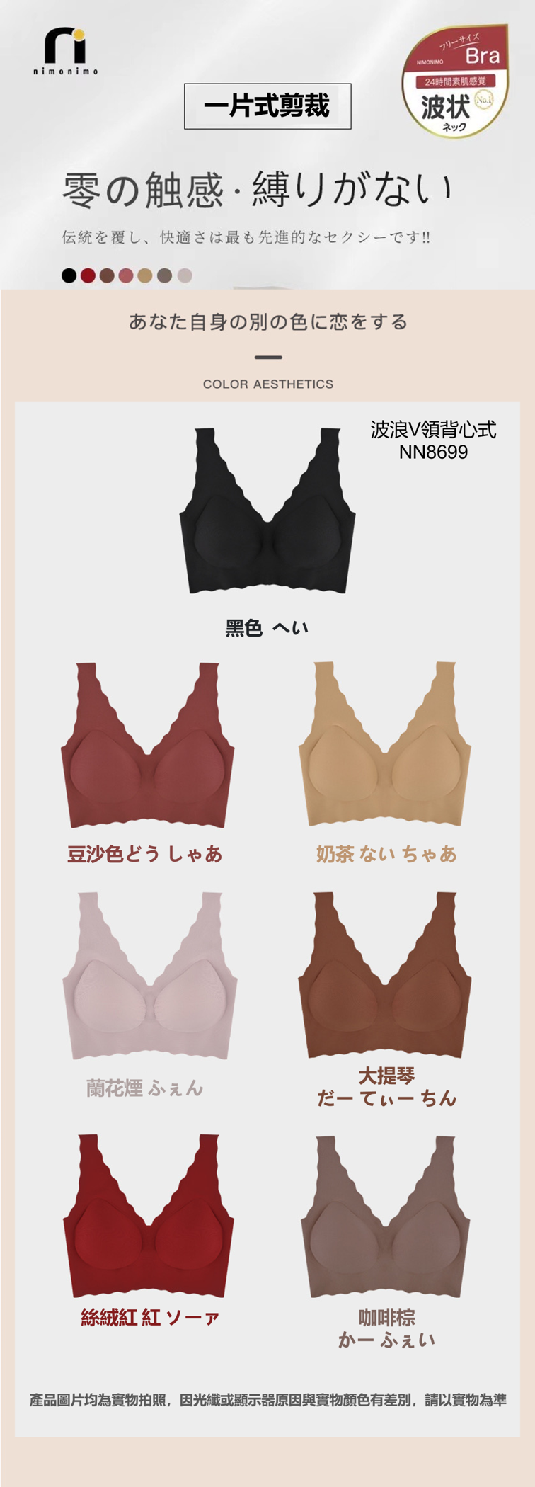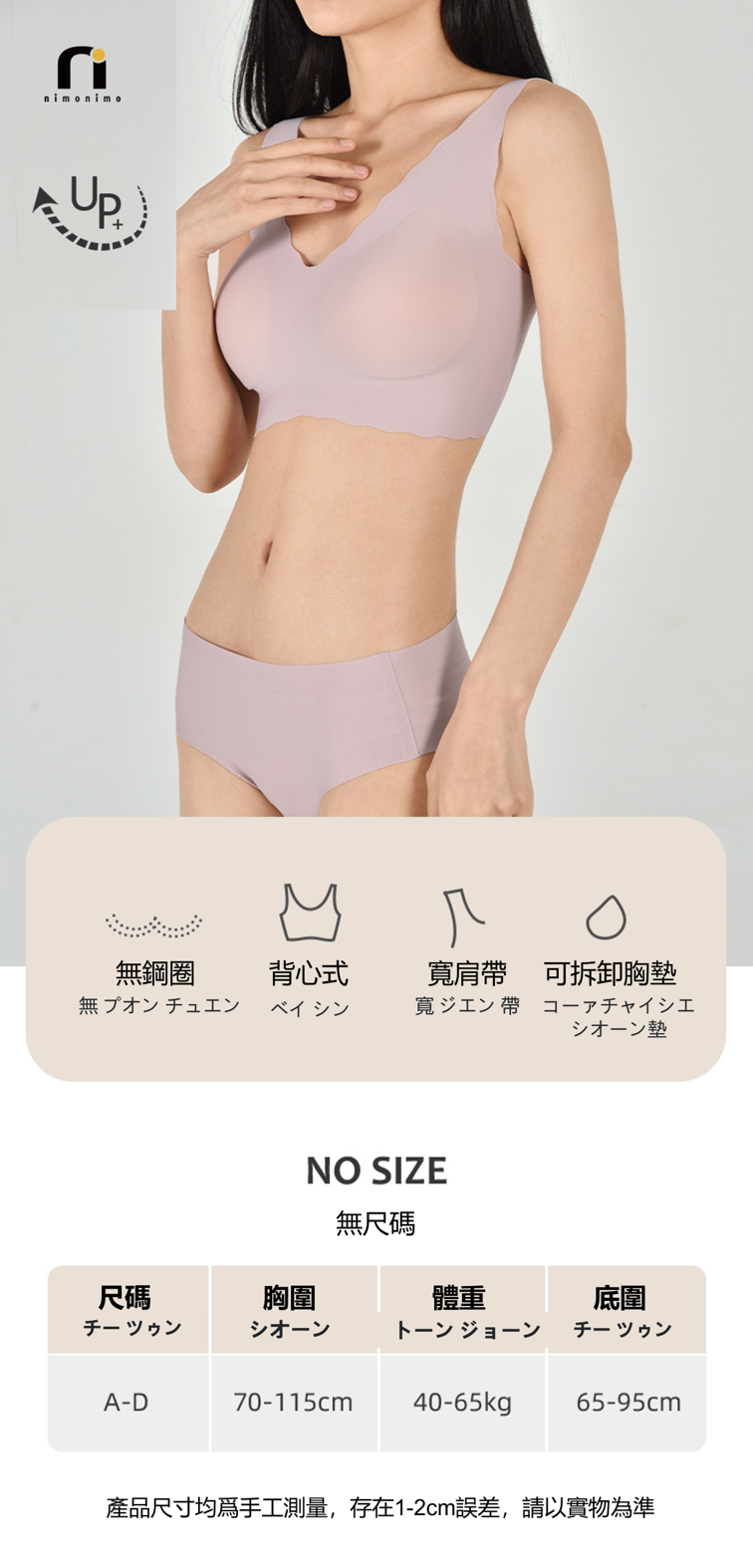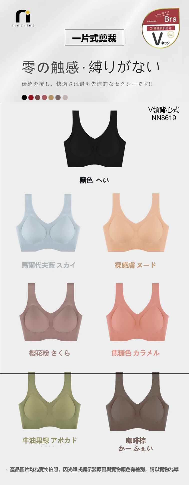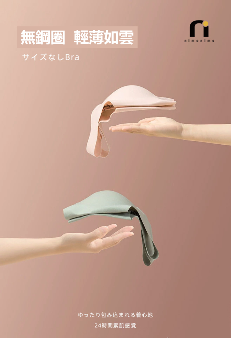 日本NIMO BRA有別於傳統鋼圈內衣對皮膚造成印痕及不適,今次推出零肌感「着完似冇着」但有效承托胸部,不移位,水滴杯型盡顯完美胸型;無痕包邊設計,穿著薄衣不會顯露Bra型;日本親膚科技面料,比市面上嘅Bra輕60%
