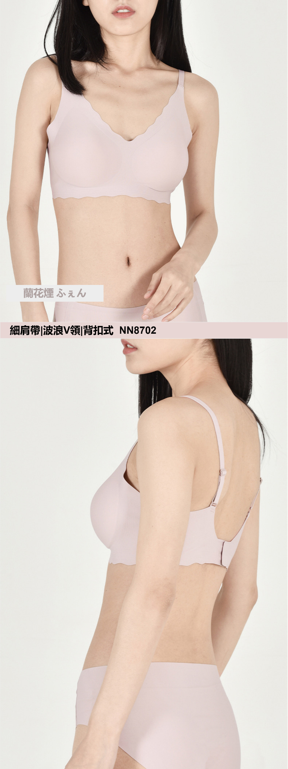 細肩帶|波浪V領|四排背扣式 (NN8702) :黑色、馬爾代夫藍、裸感膚、蘭花煙