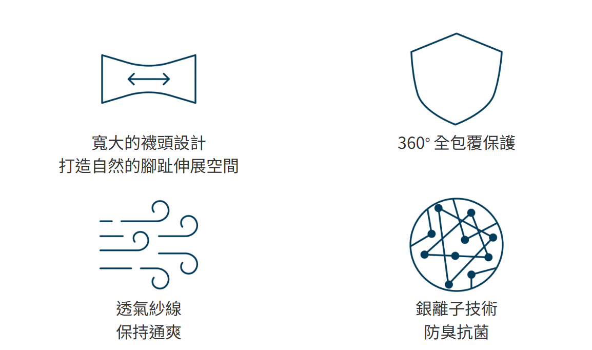 無縫線襪頭設計減緩行走或跑步時的皮膚摩擦,提供最大的親膚性及舒適感