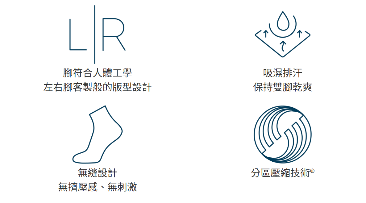 分區壓縮技術是一項專利級創新,為運動護套與專業壓縮襪打造。