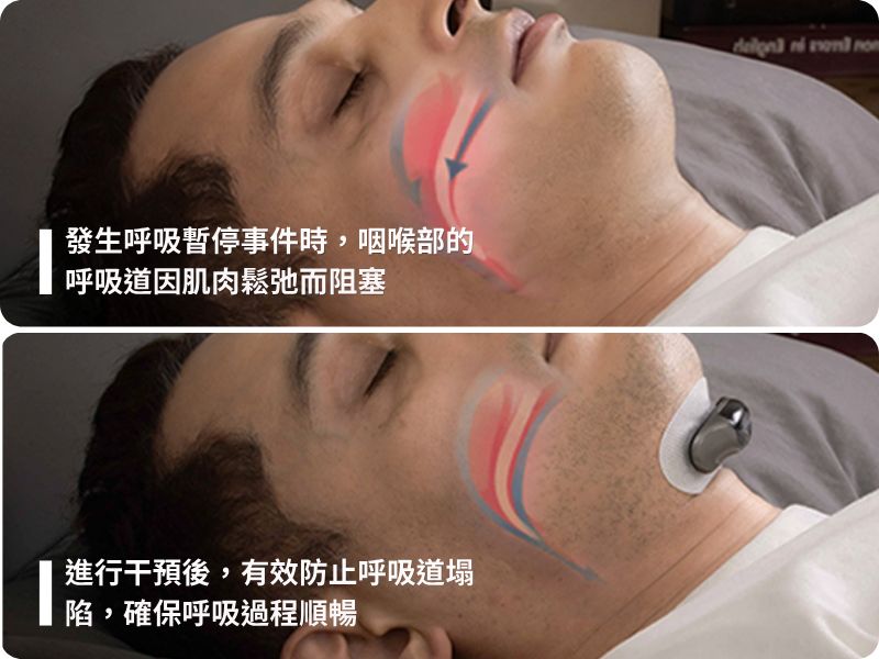 同時,EMA 則針對喉部肌群進行細緻刺激,幫助維持肌肉張力,避免因放鬆而導致呼吸道塌陷。