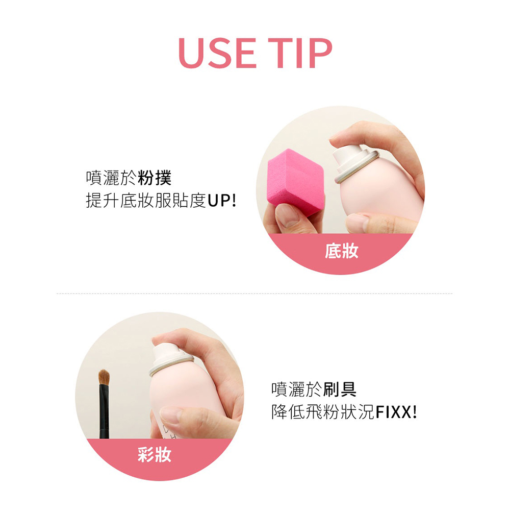 化妝後,使用前請均勻搖勻,以20-25cm的距離噴在臉上2-3次。