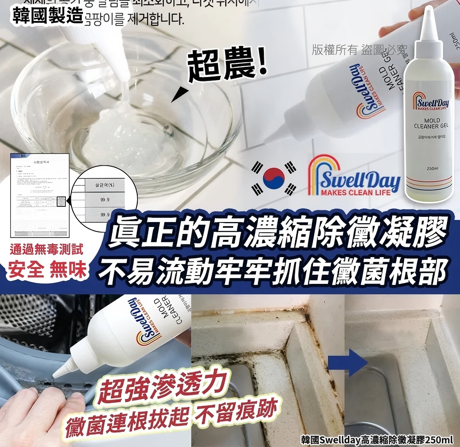 別再煩惱!韓國 Swellday 高濃縮除黴凝膠,