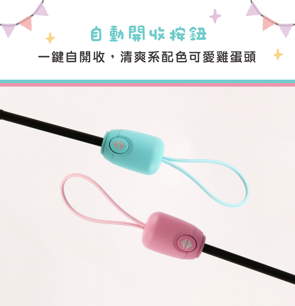 一鍵自動開合超省力,99%防曬黑膠守護您的白皙肌膚,搭配雙色拼接設計,清新感瞬間爆棚~