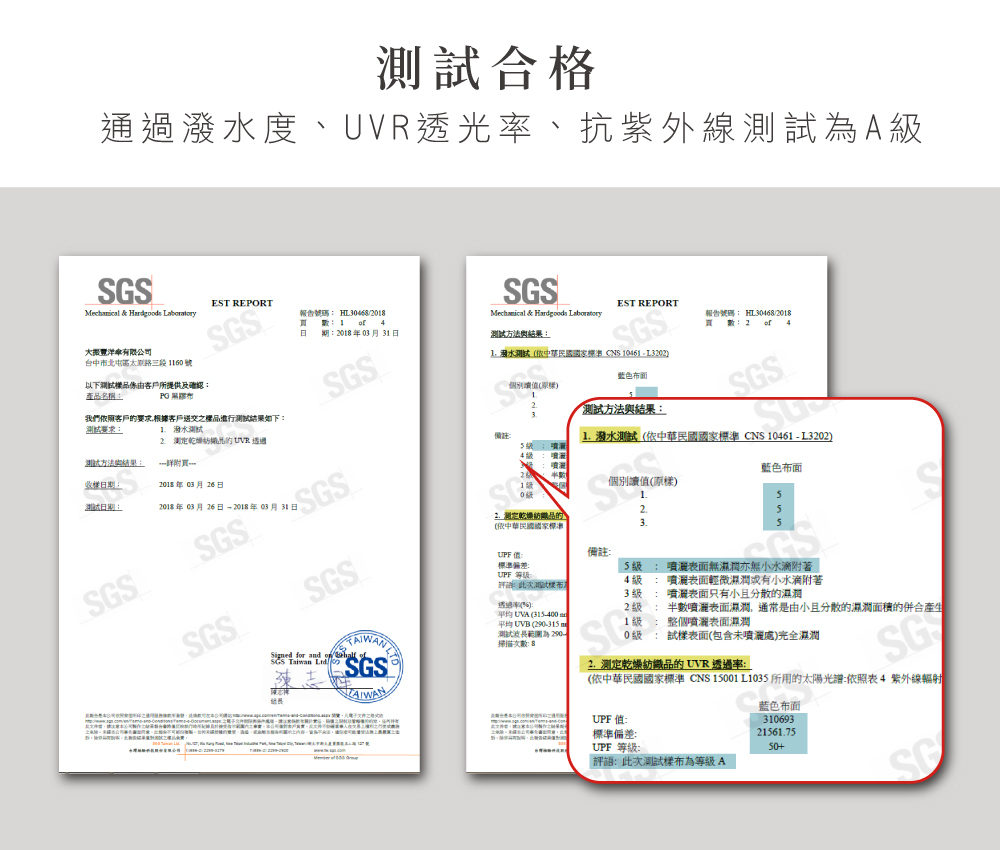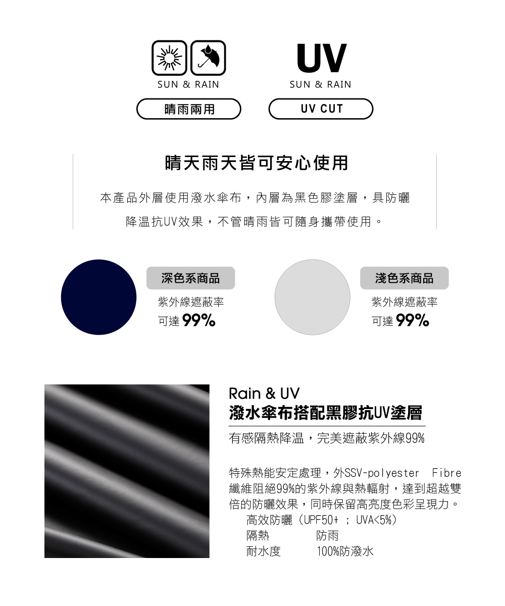 ‧高效防曬 UPF50+ UVA<5%,遮光率99%