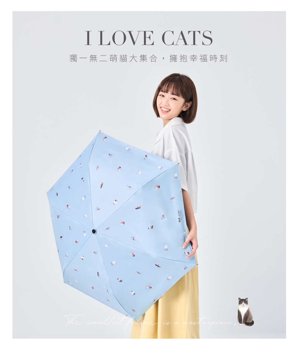 單手一按秒速開收,約310g輕盈設計,防水塗層讓雨滴自動滑落,讓猫咪圖案的治癒傘面陪你優雅穿梭晴雨日常!