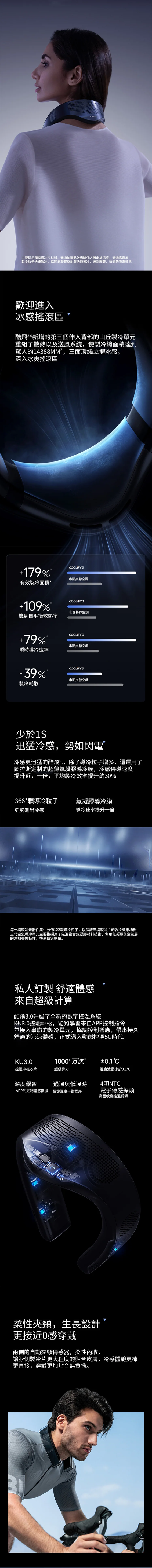 脖子周圍溫度立即降溫 37°F,多向清爽氣流