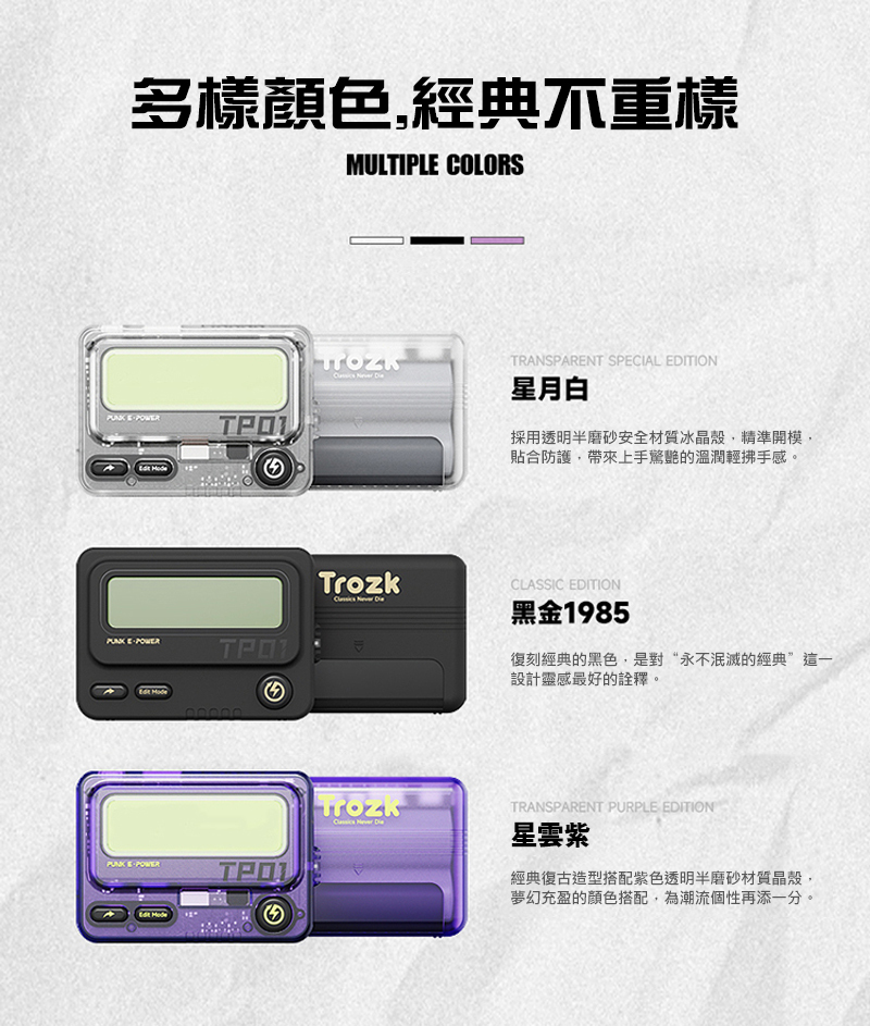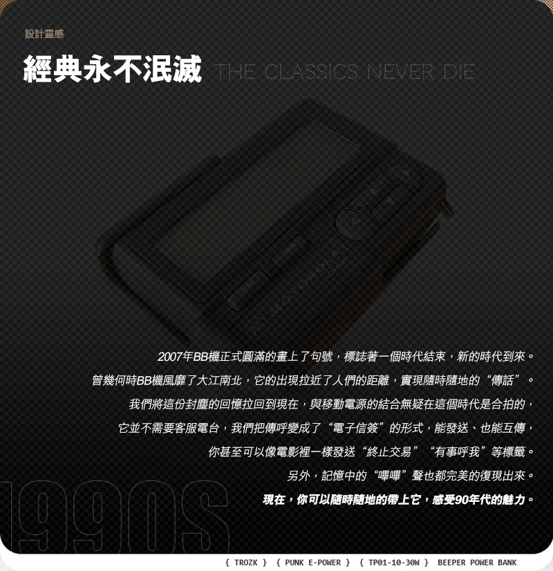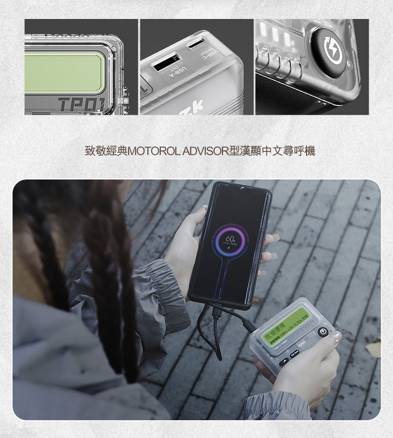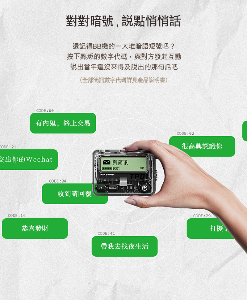 這部扮傳呼機的Trozk Call外置移動電源,內有10000mAh電量、支援PD30W雙向快充,其實在淘寶早就有簡體版,近日終於推出香港行貨繁中版本,它不單只外表復刻「BB機」,更會嗶嗶聲響,兩部同款「Call機」更可在12米內互傳訊息,有60句預設的留言可選,包括港人常用網絡用語如、「點部署」、「張中和」;廣東歌歌詞如《黃金時代》、《天梯》;電影金句如「在座咁多位都係垃圾」、「屈我啦、屈我啦!」等等,夾埋朋友買就最好玩!