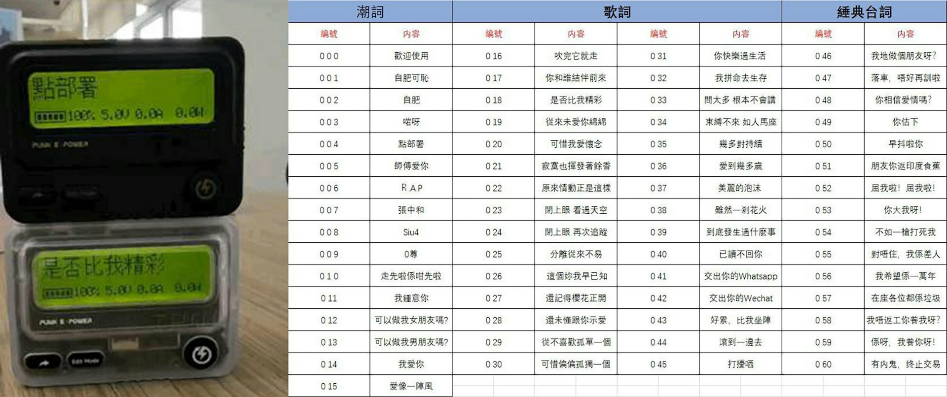 機面的迷你LED點陣屏幕不單用來看電量,更可以「扮Call機」,顯示達60種中文短訊,當中一句《無間道》內的「有內鬼,終止交易」訊息,即時解封未有智能手機及WhatsApp、LINE通訊app前、以SMS、Call機留言通信,塵封已久的90年代gadget回憶!