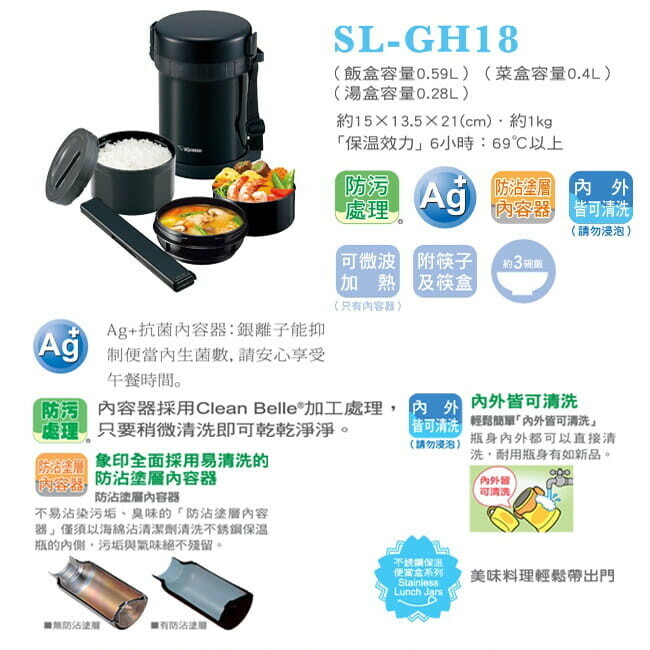 『快閃』日版象印 不銹鋼保温便當盒 1.27L (大盛)黑色 SL-GH18-BA|搵好西