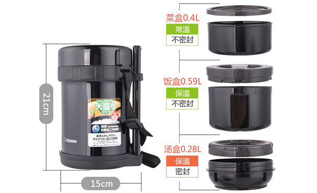 3層:飯盒容量 0.59L|菜盒容量 0.4L|湯盒容量 0.28L