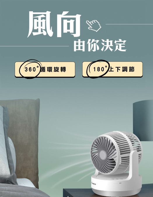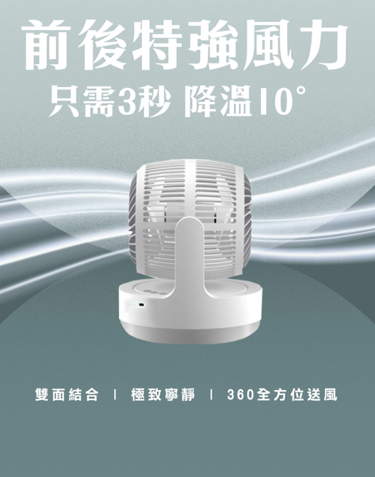 雙面出風雙頭渦輪風扇|超靜音|大風力|360度送風
