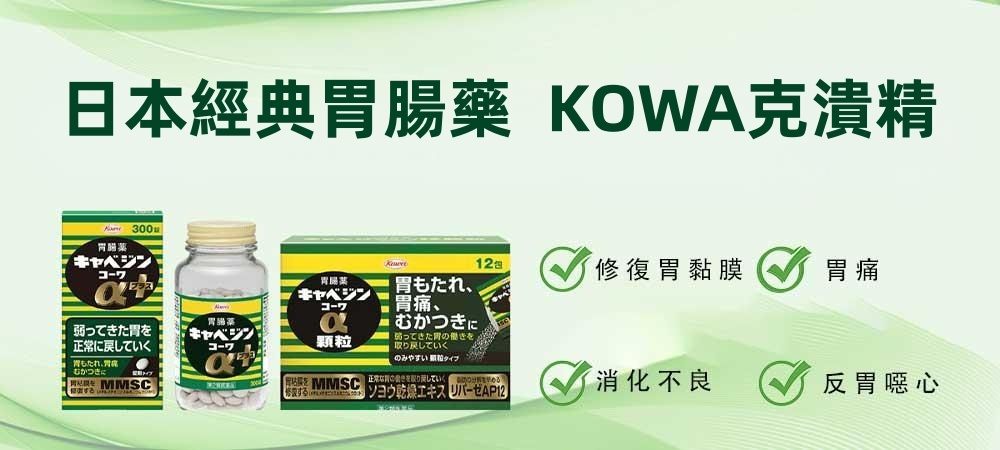 克潰精 α PLUS 錠劑是興和製藥旗下經典的胃腸藥系列之一,針對因年齡、生活壓力、飲食不規律導致的胃部不適所設計,